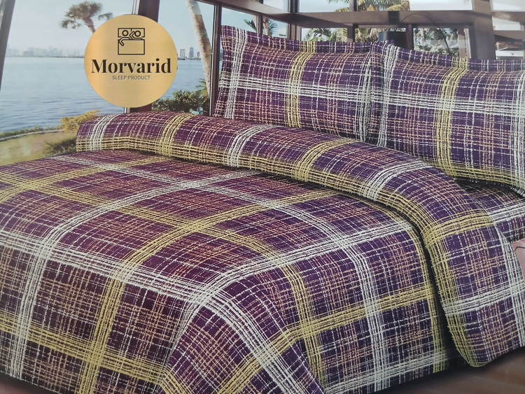 ۴ تکه شامل: ۱ عدد لحاف+ ۱ عدد ملحفه کشدار+ ۱عددروبالشی+ ۱ عدد رویه کوسن.