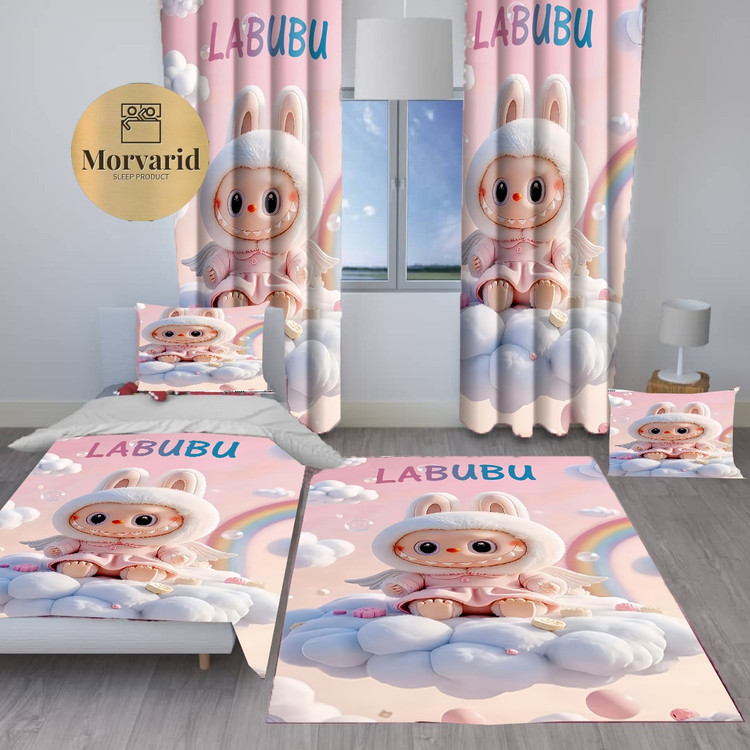 🩷با روتختی طرح لبوبو، هربار که وارد اتاقت میشی لبخند روی لبت میاد و فضای خوابت پر از صمیمیت و شیرینی کودکانه میشه.